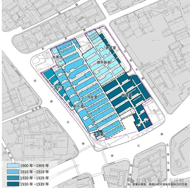 鸿安里始建的时间为1910年,属于早期石库门里弄,门头造型各异,采用半圆形,长条形砖砌门楣,部分有石箍及雀替元素;1937 年又拆建改建一批广式里弄。鸿安里是场地内贯穿南北、排数最多,体量最完整的成片里弄,富建筑型制,具有更新保护价值,被成为石库门里弄的基因库。